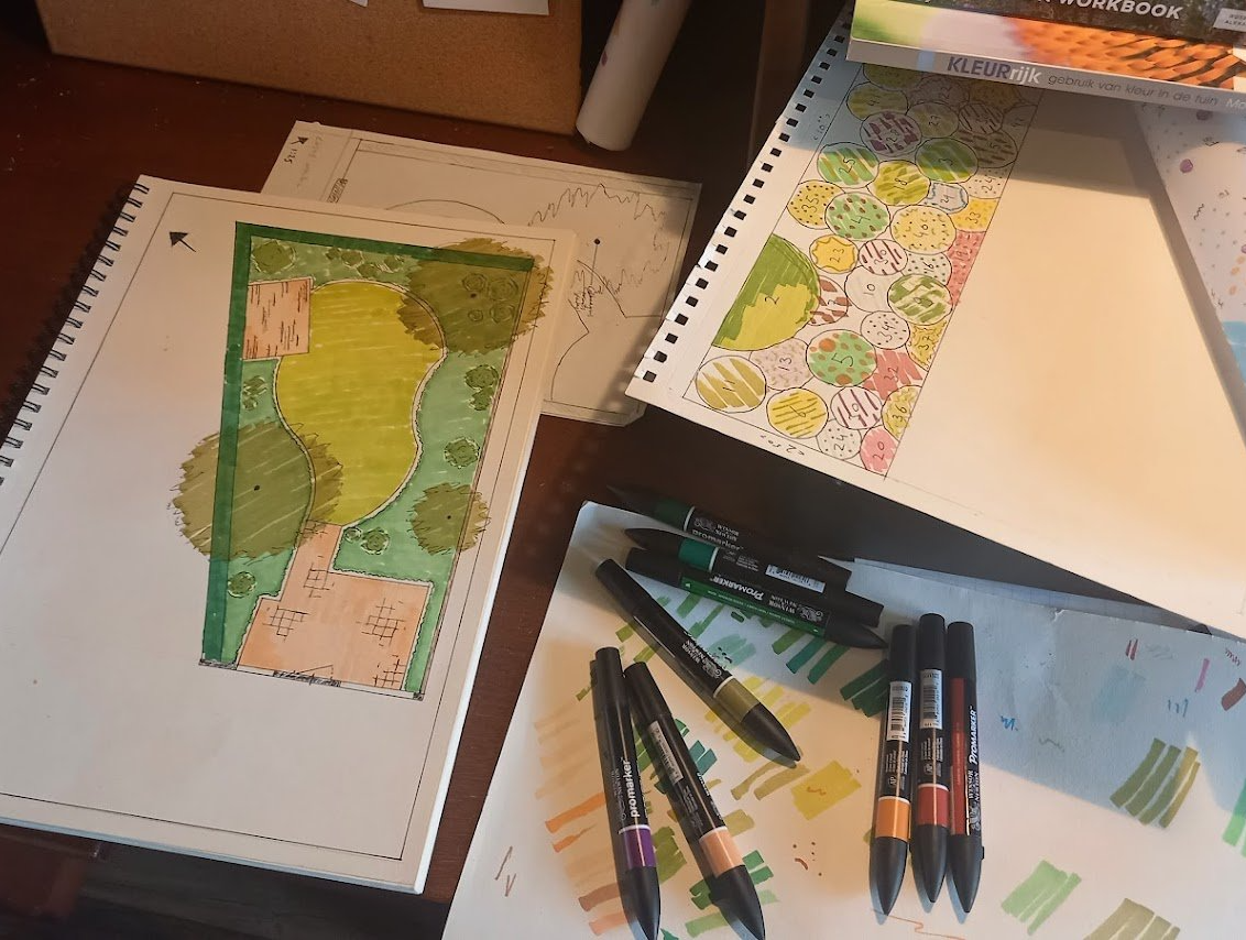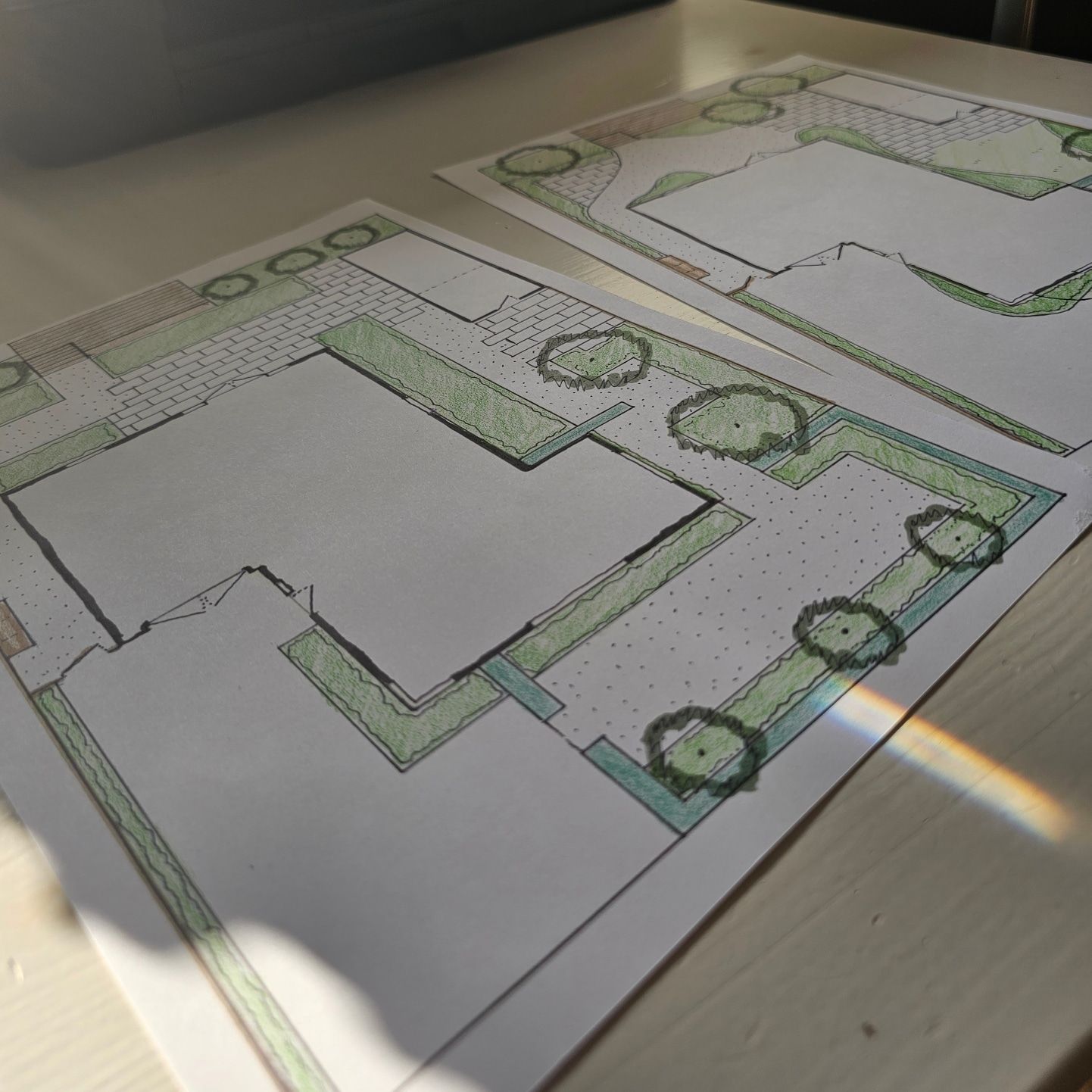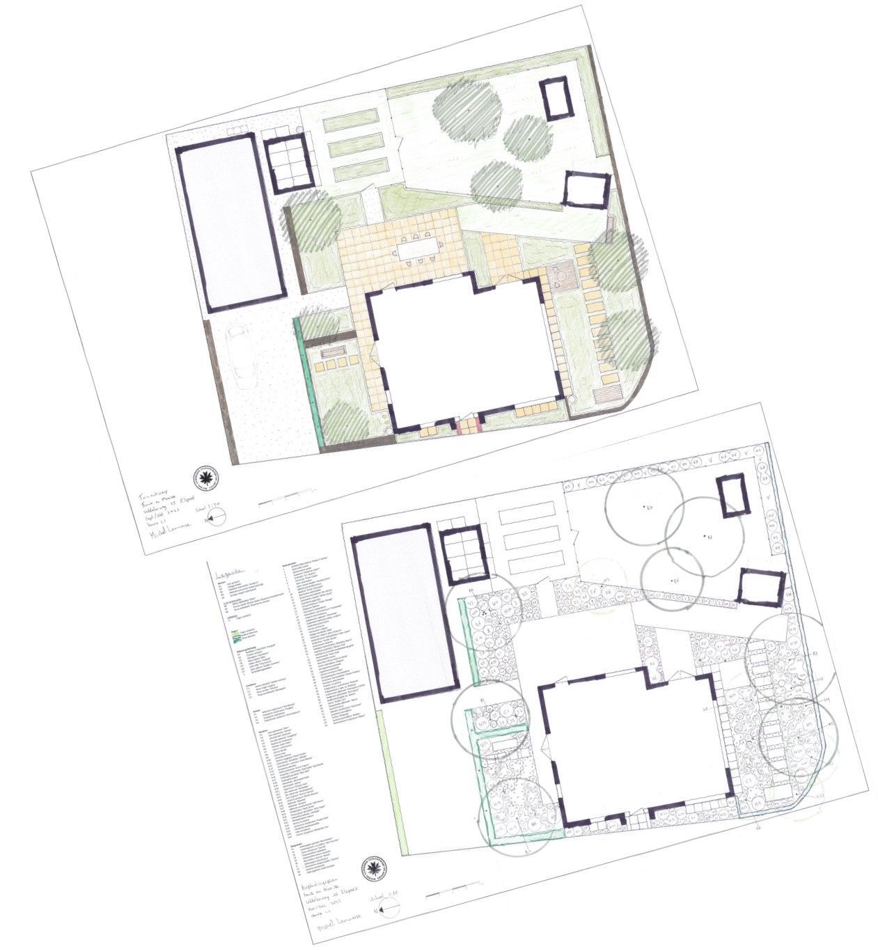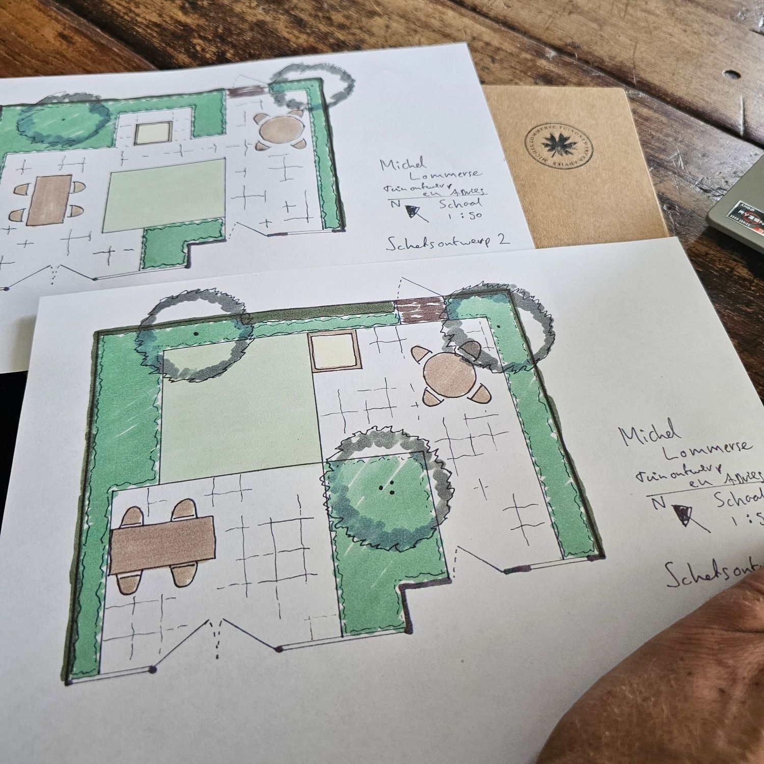 De volgende stap in het traject is het maken van een schets. Ik combineer jouw wensen met mijn creativiteit, ontwikkel een concept en vertaal dat naar een eerste ruimtelijke opzet van de tuin.