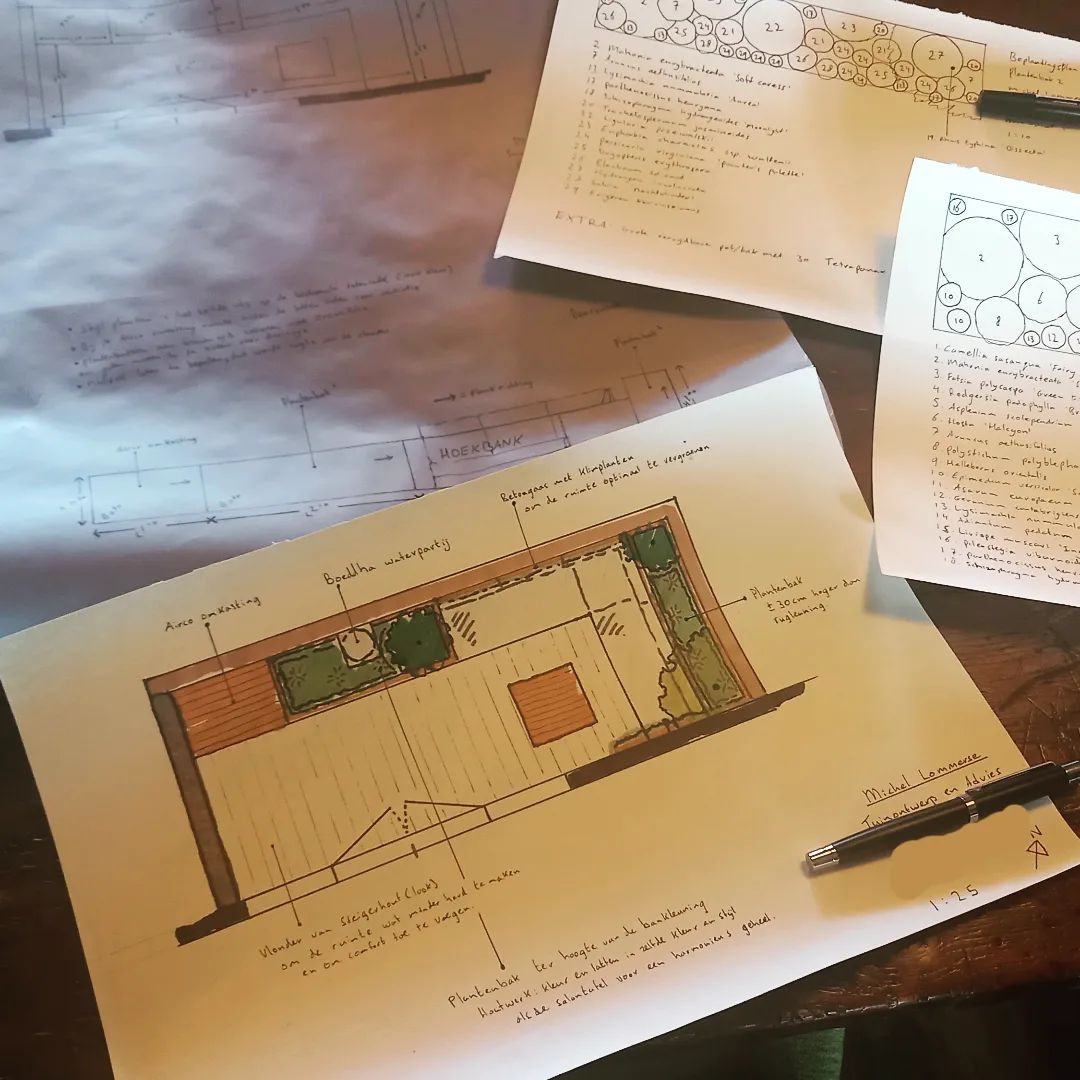 Ik kom graag bij je langs om de tuin samen te bekijken. We nemen de tijd om jouw wensen door te spreken, wisselen ideeën uit en meten, als dat nodig is, samen de tuin op.