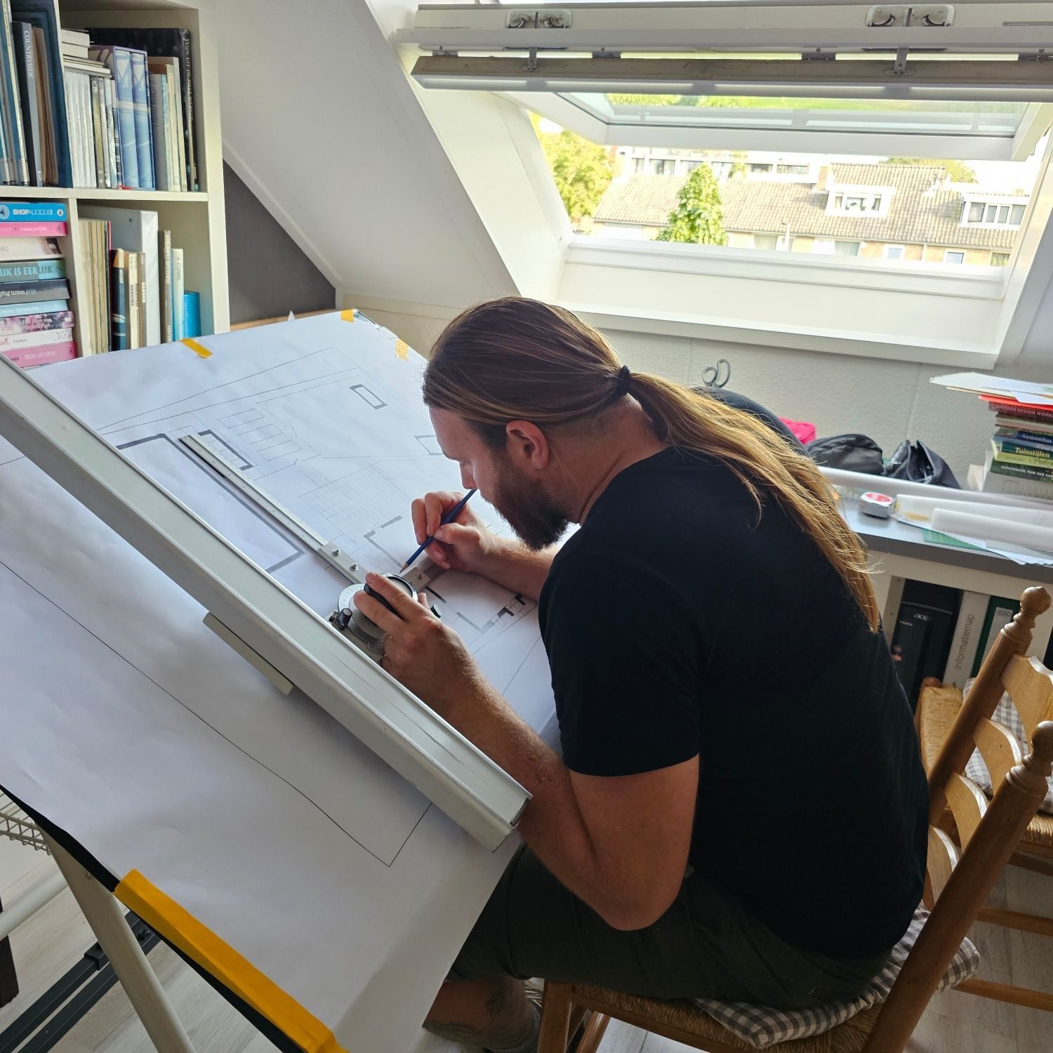 Als de schets klaar is, nemen we die samen door. We kijken of alles klopt en of er nog aanpassingen nodig zijn. Is dat het geval, dan verwerk ik die in een aangepaste versie en bespreken we het opnieuw.